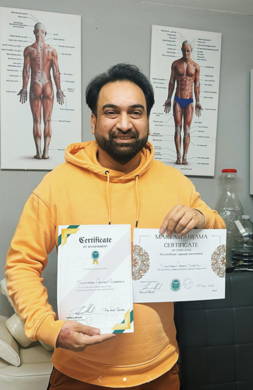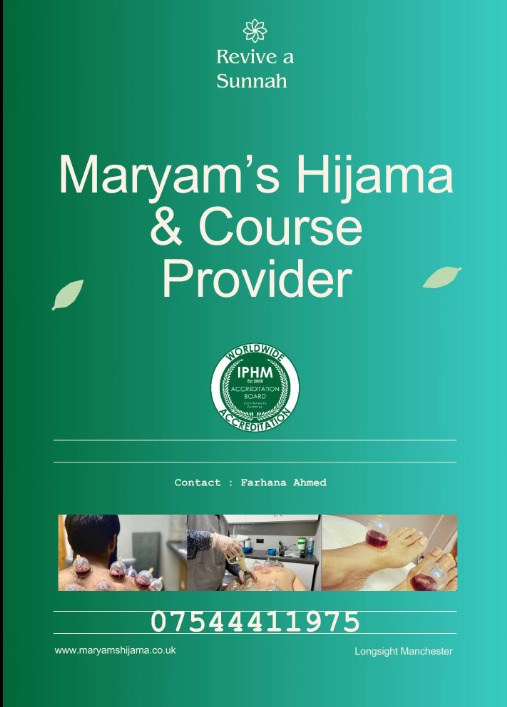 My name is Farhana Ahmed and I am a hijama cupping practitioner. I have been practising holistic therapy for almost 7 years now. I was taught and trained by Dr Walid Zamzam, I am fully qualified and insured.